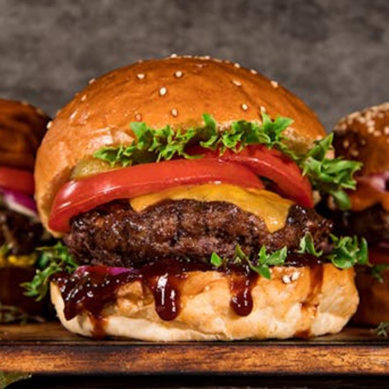 • BBQ Bacon Burger (Applewood smoked bacon, cheddar cheese, BBQ sauce & onion ring).